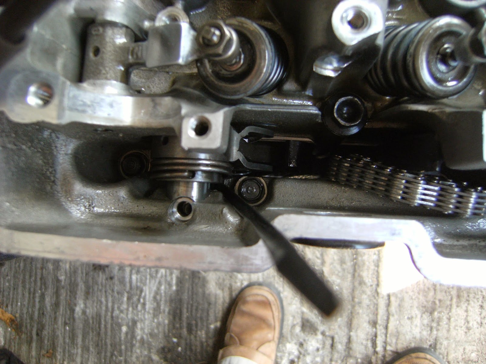 This all took at least two hours of poking, prodding, compressing and undoing. If only my paranoia of breaking valve springs wasn't so strong! Anyway, so we now have four inner springs (14761-KE5-003, £9.60) and four outer springs (14751-KE5-003, £12) fitted and ready to go. I'll also show you how much cleaner the valves are now: